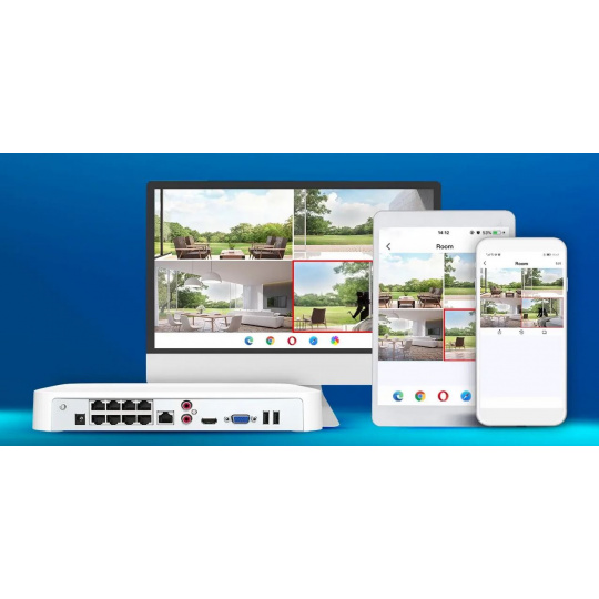 NVR rekordér podporuje jeden z nejnovějších kodeků pro pořizování videozáznamů - H.265. Oproti staršímu kodeku H.264 je možné uložit až o 50% více videozáznamů na datové úložiště a také přenos dat v síti je poloviční, síť tak není zbytečně přetěžovaná.