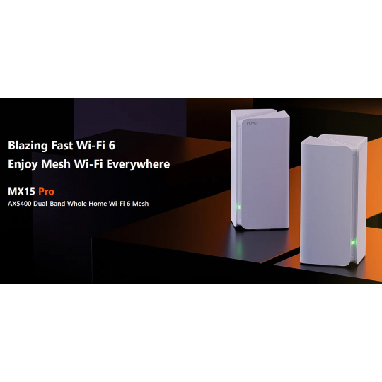 Tenda MX15 Pro je nový systém s podporou WiFi+ Mesh pro kvalitní pokrytí WiFi sítí. Disponuje rychlostí WiFi 6 AX5400, a je určena pro pokrytí 100-360 m2 domů/bytů. Díky podpoře roamingových protokolů dle normy IEEE 802.11k/v podporuje MX15 Pro automatickou optimalizaci sítě a automatický výběr směrování, což vám umožní vychutnat si stabilnější a flexibilnější bezdrátovou síť.