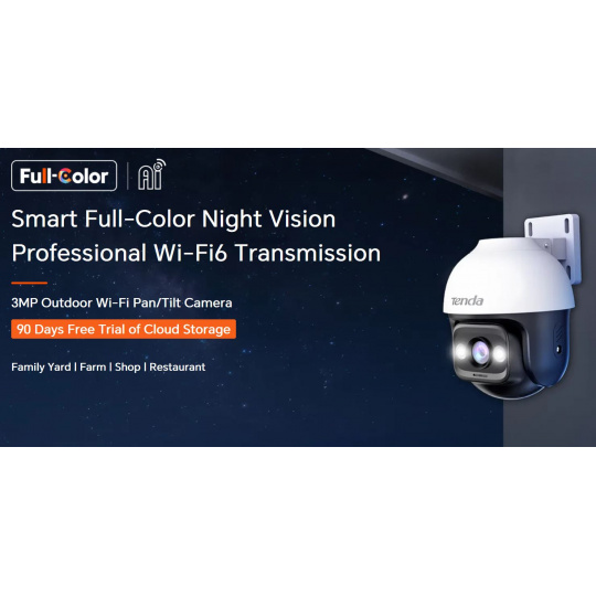 Venkovní otočná IP kamera s online sledováním pomocí mobilního telefonu a tabletu. Ukládání záznamů a fotografií na microSD kartu nebo Cloud. Rozlišení 3 MPx pro video ve vysoké kvalitě, denní i noční provoz díky IR a LED dosvitu až 30 m, ohnisková vzdálenost 4,0 mm, Wi-Fi 6 b/g/n/ax, 1x LAN RJ45 10/100 Mb/s, mikrofon a reproduktor, slot pro microSD kartu s velikostí až 512 GB. Úhel záběru 355° horizontálně a 90° vertikálně. Kamera podporuje detekci pohybu, osoby a vozidla, a automatické otáčení za pohybem/osobou. Součástí balení je držák na stěnu/strop.