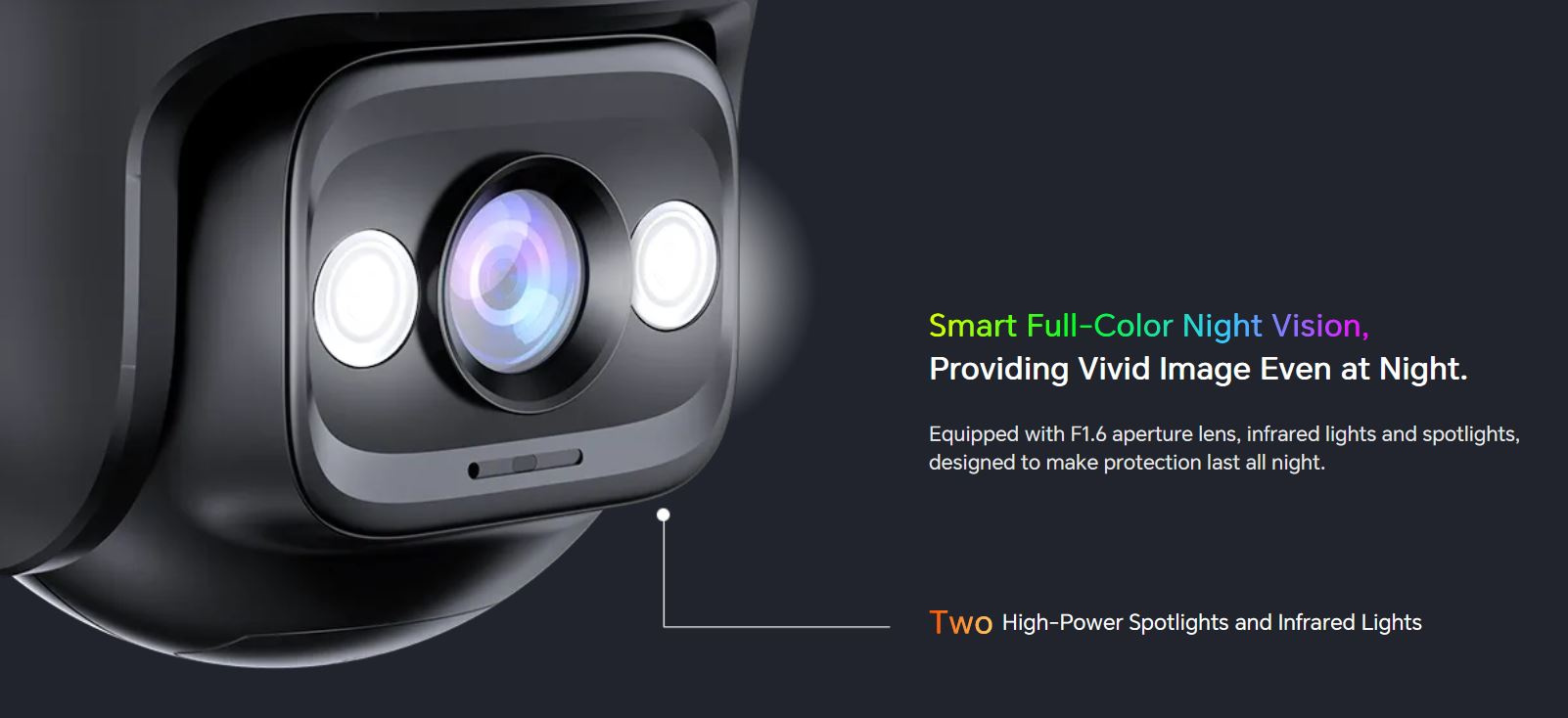 Kamera RH3-WCAv2 obsahuje LED diody pro noční svícení. Dvě bílé LED diody a další dvě infračervené IR LED diody pro přísvit v noci a korekci slunce ve dne. Na výběr je několik druhů nočního vidění (Smart mód, Plněbarevný mód, Černobílý mód). Je možné ponechat režim nočního svícení zapnutý, vypnutý nebo jej kamera aktivuje a deaktivuje automaticky.