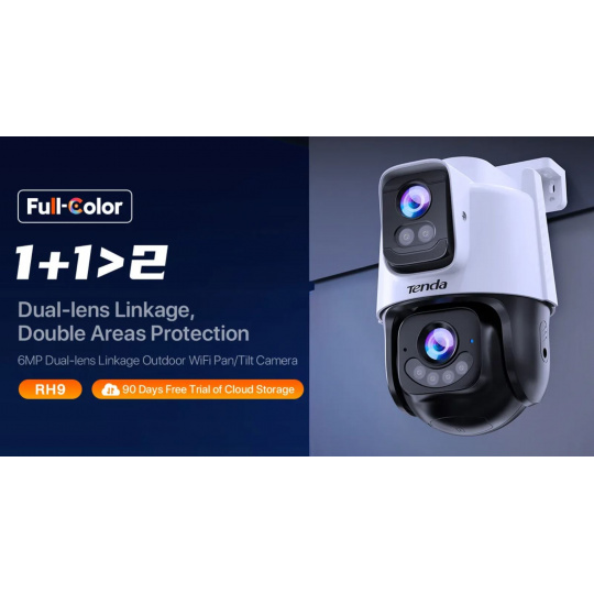 Tenda RH9-WCA - Venkovní otočná Dual Lens IP65 Wi-Fi 6 MPx kamera, noční LED, audio, detekce, CZ app