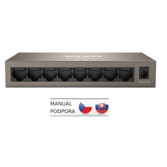 Tenda TEG1008M 8-port Gigabit Switch, 8x 10/100/1000 Mb/s, Fanless, MAC 4K, napájení AC/DC, i na zeď