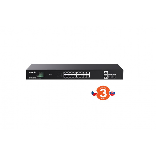 Tenda TEG1120P-16-250W PoE+ Gigabit switch 16x 1Gb/s PoE+ 802.3af/at + 2x SFP + 2x RJ45, 230W, Rack