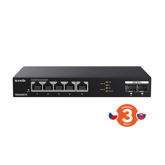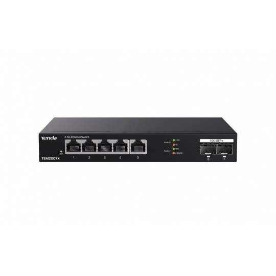 Tenda TEM2007X - Multi-gigabit switch, 5x 2.5G RJ45 + 2x 10G SFP+ port, MAC 16K, ochrana 6kV