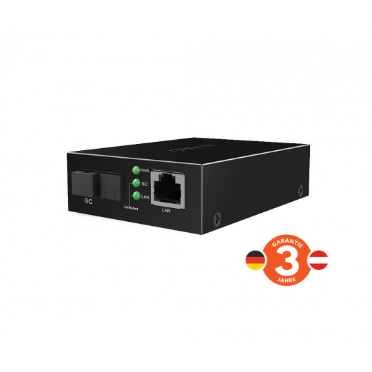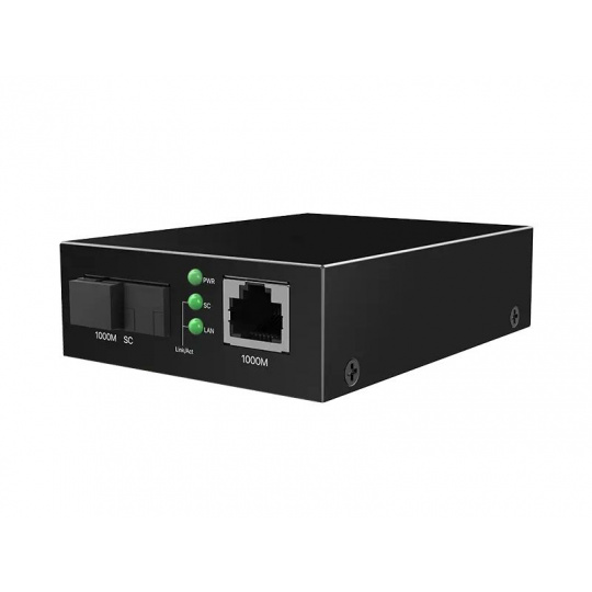 Tenda TFC300B je Gigabitový opticko - metalický WDM převodník z ethernetového RJ45 portu na optický SC port. Data přenáší pomocí singlemode optického vlákna, přenos Tx 1310nm, Rx 1550nm až do vzdálenosti 3km. Rychlosti RJ45 i SC portu jsou 1000 Mb/s, ochrana proti přepětí 6 kV. Kovový obal. Na protilehlou stranu optického připojení doporučujeme Tenda TFC300A. Hlavní parametry - Ethernetový konektor: 1x 1000 Mb/s Auto-Negotiation RJ45 včetně Auto-MDI / MDIX - Optický konektor: 1x 1000 Mb/s SC s broušením UPC, připojení SM 9/125 - Vzdálenost: délka optického vlákna až 3 km - Technologie WDM: data se vysílají a přijímají pouze po jednom optickém vlákně Popis produktu Tenda TFC300B je gigabitový převodník mezi ethernetovým a optickým připojením. Podporuje připojení singlemode vlákna pomocí konektoru SC, tento optický signál poté převádí na elektrický - do ethernetového kabelu a obráceně. Podporovaná délka optického vlákna je až 3km. TFC300B využívá techniku WDM, která umožňuje optickému rozhraní přenášet signál pouze pomocí jednoho vlákna. Vysílá na vlnové délce Tx 1310nm a přijímá na Rx 1550nm. Navíc disponuje TFC300B kovovým provedením a ochranou proti přepětí 6kV. Není nutné žádné nastavení, pouze připojení ethernetového kabelu a optického vlákna. Na protilehlou stranu optického vlákna je poté nutné použít také WDM technologii ale s opačným Tx a Rx. Doporučujeme použít model Tenda TFC300A který je plně kompatibilní. Technické parametry Konektory: 1x RJ45 1000BASE-Tx, 1x SC (UPC) Vlnová délka: Tx = 1310nm, Rx = 1550nm Vzdálenost: délka optického vlákna až 3 km LED Indikace: Power, 2x Link / Activity Napájení: externí napájecí adaptér 100-240V AC 50/60Hz - 5V DC 0,6A Spotřeba: max. 3 W Rozměry: 95mm x 72mm x 26mm(L*W*H) Pracovní teplota: 0°C ~ 45°C Vlhkost: 10%-90%RH (nekondenzující) Obsah balení 1x Tenda TFC300B 1x Stručná instalační příručka 1x Napájecí adaptér 5V DC, 0.6A
