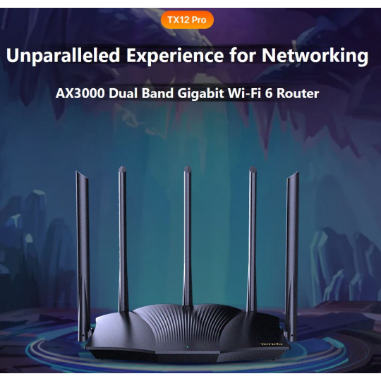 Tenda TX12 Pro AX3000 WiFi6 Router, 1x GWAN, 3x GLAN, IPv6, 5x 6dBi, WPA3, Mesh, CZ app