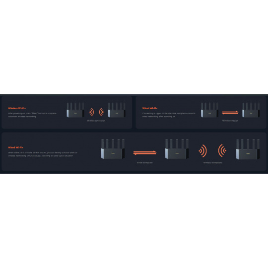 Router podporuje připojení k sítím Mesh pomocí Wi-Fi+ Mesh a je tak možné jej kombinovat s dalšími Tenda Mesh systémy.