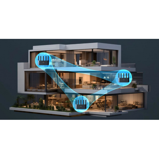 - Stabilní připojení a pokrytí - díky podpoře MU-MIMO 2x2 a OFDMA je možné připojit více zařízení při zachování plné stability signálu, navíc technologie Beamforming a pět 6 dBi antén zajišťují rozsáhlé pokrytí