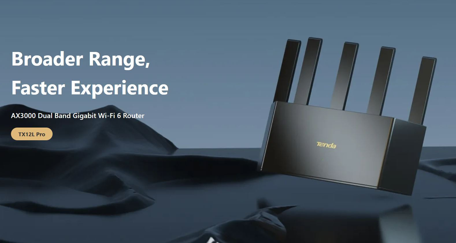 Tenda TX12L Pro AX3000 WiFi 6 Mesh Router, 1x GWAN, 3x GLAN, IPv6, 5x 6dBi, WPA 3, CZ app