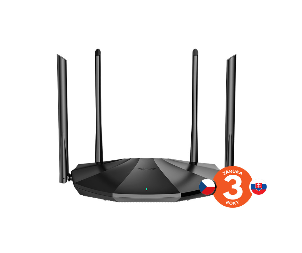 Dvoupásmový Gigabitový Wi-Fi 6 (AX1500) router 802.11 ax/ac/a/b/g/n, zabezpečení WPA3, SMART CZ aplikace, 1x GWAN, 3x GLAN, 4x anténa 6 dBi, až 1501 Mb/s (2,4GHz 300 Mb/s + 5GHz 1201 Mb/s), IPv6, Universal Repeater, AP mode, MU-MIMO + OFDMA, Beamforming.