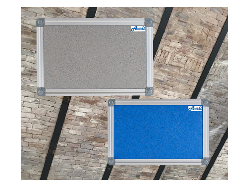 Moderní textilní nástěnka AVELI má vysoce odolný povrch proti poškození při práci s napínáčky a špendlíky. Má lehkou konstrukci a elegantní rám z kvalitního eloxovaného hliníku. Nástěnka má moderní plastové uzávěry, které zakryjí upevnění na zeď.
