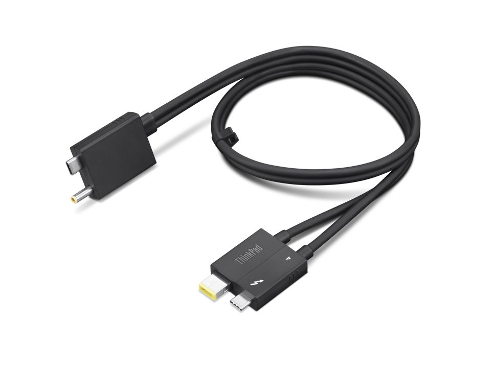 Kabel Lenovo Thunderbolt 4 Workstation Dock Split je dokovací dělený kabel o délce 70 cm (2'4"), navržený pro dokovací stanici ThinkPad Thunderbolt 4 WorkStation Dock kombinací tenkého napájecího kabelu a kabelu Thunderbolt 4.