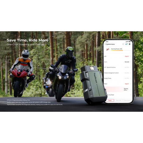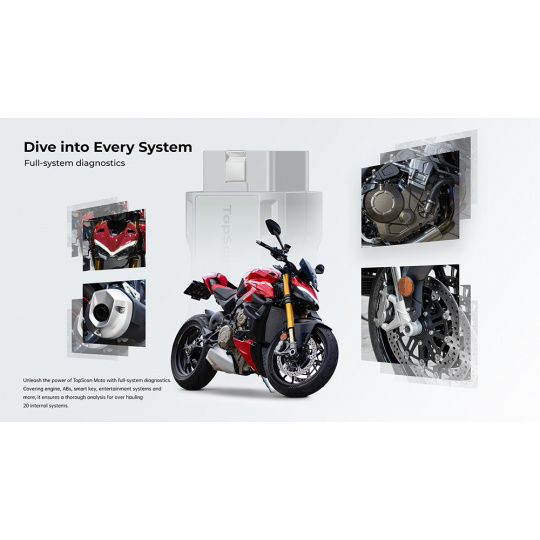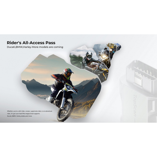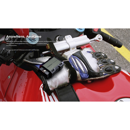 TopScan Moto od společnosti TOPDON® mění pravidla hry pro motocyklové nadšence a nabízí kapesní diagnostiku, která promění chytrý telefon v přesný diagnostický nástroj pro motocykly. Ať už jste příležitostný jezdec, zkušený kutil nebo profesionální mechanik, TopScan Moto poskytuje komplexní diagnostiku systému a funkce údržby bez námahy.