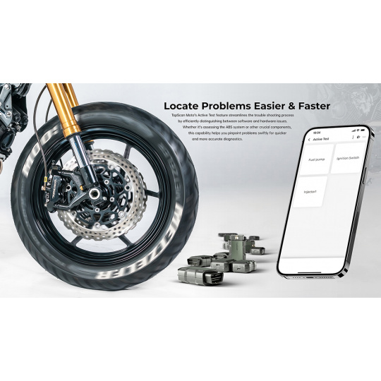 Funkce Active Test softwaru TopScan Moto zjednodušuje proces řešení problémů tím, že účinně rozlišuje mezi softwarovými a hardwarovými problémy. Ať už jde o posouzení systému ABS nebo jiných důležitých součástí, tato funkce vám pomůže přesně určit problémy pro rychlejší a přesnější diagnostiku.