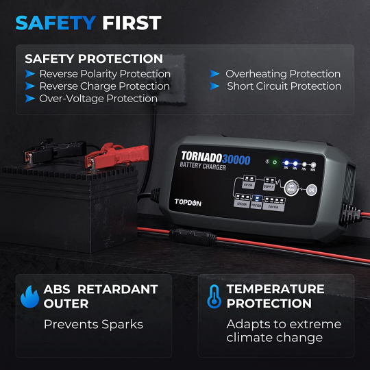 S jeho 9stupňovým, chytrým nabíjením a s jeho 12 nabíjecími módy, poskytuje TORNADO30000 bezkonkurenční možnost nabíjení a ochrany pro svého uživatele.