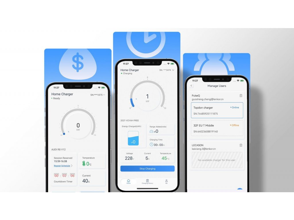 2. App Control: Tato nabíječka elektromobilů lze ovládat pomocí aplikace (dostupnou jak pro Android, tak pro iOS), která je potřeba nainstalovat do Vašeho chytrého telefonu. Tato aplikace Vám umožní ovládat nabíječku a monitorovat průběh nabíjení z jakéhokoli místa, kde máte přístup k internetu. Díky tomu můžete například vzdáleně zapnout nebo vypnout nabíjení a mít přehled o průběhu nabíjení.
