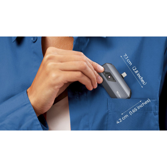 TC002 je kompaktní a lehký, rozměry jsou 7,1 cm x 4,2 cm x 1,4 cm a váha pouhých 30 gramů.