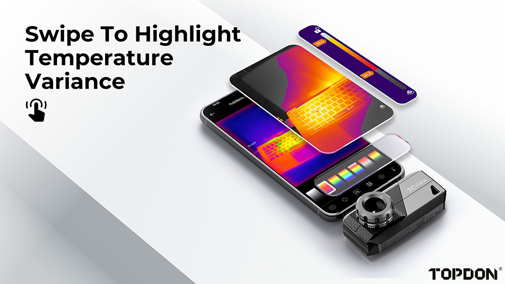 Pomocí jednoduchého pohybu prstem můžete snadno přizpůsobit termální zobrazení a zaměřit se na klíčové teplotní oblasti, které vás zajímají. Intuitivní barevný pruh umožňuje rychlé nastavení teplotního rozsahu, na který chcete upozornit. Pokud teploty překročí vámi nastavený limit, automaticky se zobrazí v tučných černobílých odstínech nebo jiných barvách dle vašeho výběru, což okamžitě zvýrazní teplotní rozdíly a zajistí snadnou interpretaci teplotních změn.