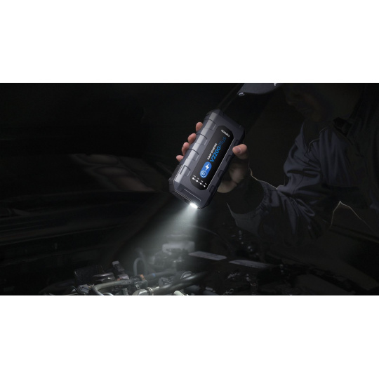 Jump starter s testrem barerií v jednom. Startovací proud až 2200A. Nastartuje dieselové motory do objemu až 6.0L, benzínové motory do objemu až 8.0L a to opakovaně v závislosti na objemu Vašeho motoru. Chytrá aplikace skrze Bluetooth vám poskytne základní diagnostiku stavu vaší baterie a nabíjecího okruhu baterie. Startovací zdroj k nastartování 12V osobních a nákladních vozidel, lodí, motocyklů, skútrů, pickupů, atd.