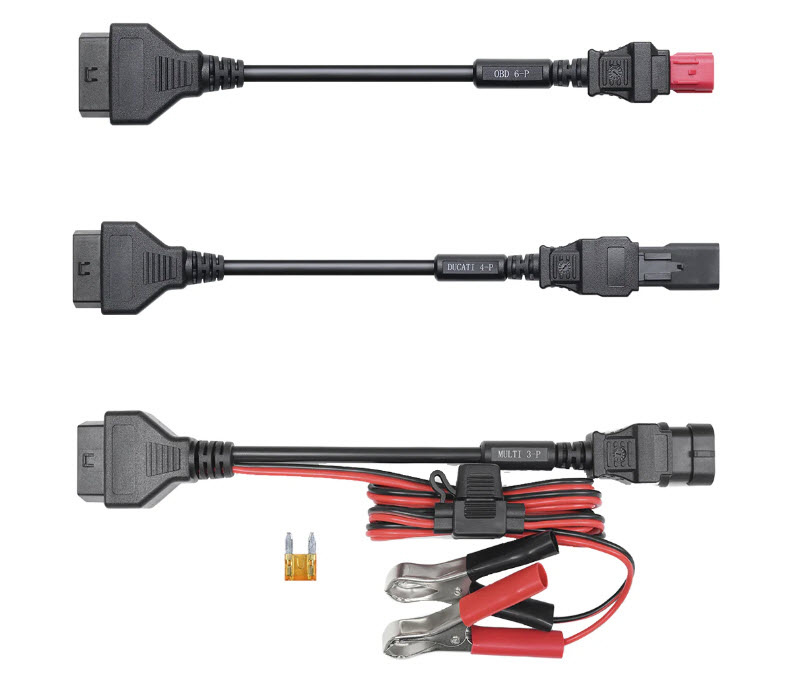 Topscan Moto Ducati Kabelová Sada slouží k propojení motocyklu s diagnostickým zařízením TopScan Moto. Tento adaptér umožňuje správné připojení motocyklů konkrétní značky k zařízení, což umožňuje čtení diagnostických dat a provádění servisních kontrol. Použití kabelové sady je nezbytné pro motocykly, které nejsou vybaveny standardním OBD-II portem.