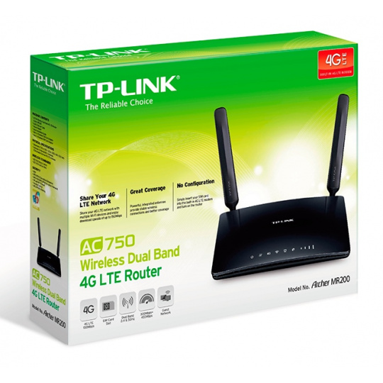 * AC750 Wireless Dual Band 4G LTE Router, Archer MR200