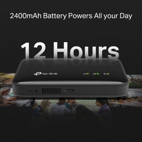 Užívejte si rychlé 4G LTE připojení až pro 10 zařízení najednou a Wi-Fi 6 na 2,4GHz s rychlostí až 287Mb/s. Díky kompaktní baterii 2400mAh vydrží hotspot až 12 hodin provozu a snadno se spravuje přes aplikaci tpMiFi.