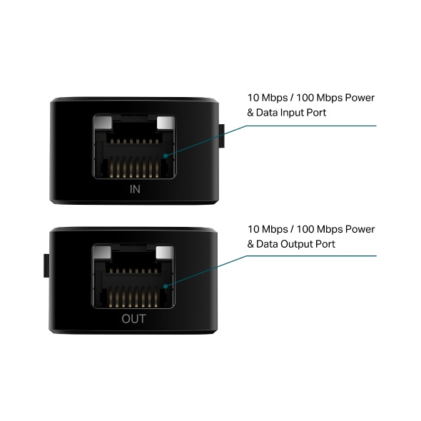 *Rozšiřuje síťové připojení PoE/PoE+ o dalších 100 m – 250 m (režim 10 Mb/s) od zařízení zdroje napájení PoE