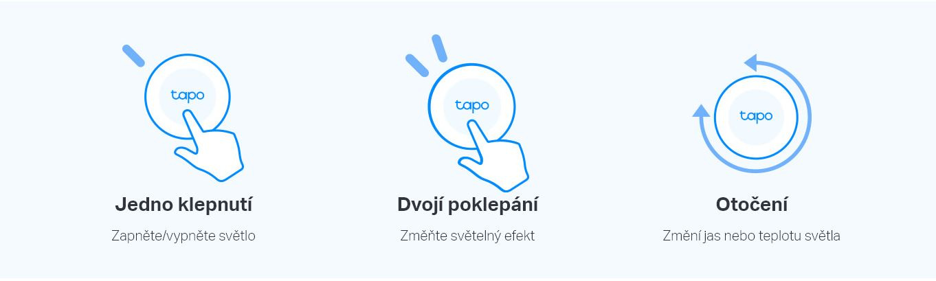 * chytré tlačítko – ovládejte a nastavujte různá světla, elektroniku a další chytrá zařízení Tapo pomocí tlačítka