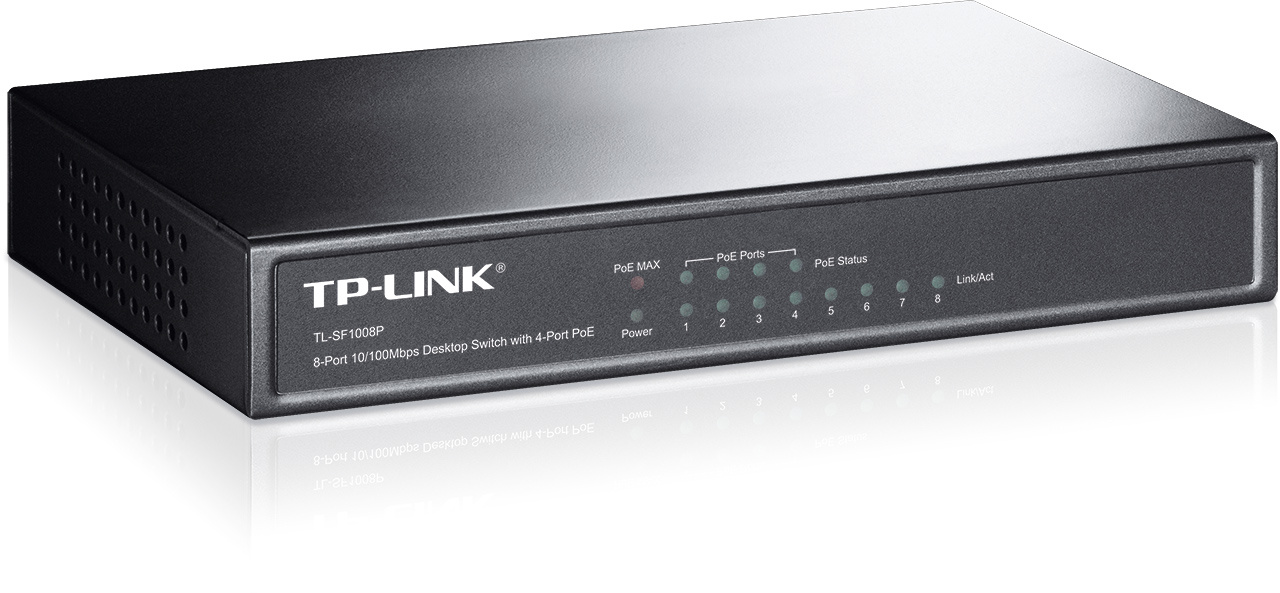 TP-Link TL-SF1008P 8x10/100 (4xPOE) 66W Desktop kovový CCTV Switch