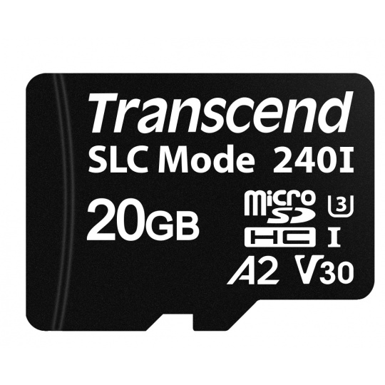 Transcend 20GB microSDXC240I UHS-I U3 V30 A2 (Class 10) 3D TLC (SLC mode) průmyslová paměťová karta, 100MB/s R, 80MB/s W
