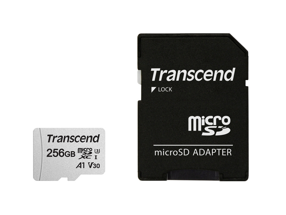 Transcend 256GB microSDXC 300S UHS-I U3 V30 A1 (Class 10) paměťová karta (s adaptérem), 95MB/s R, 40MB/s W