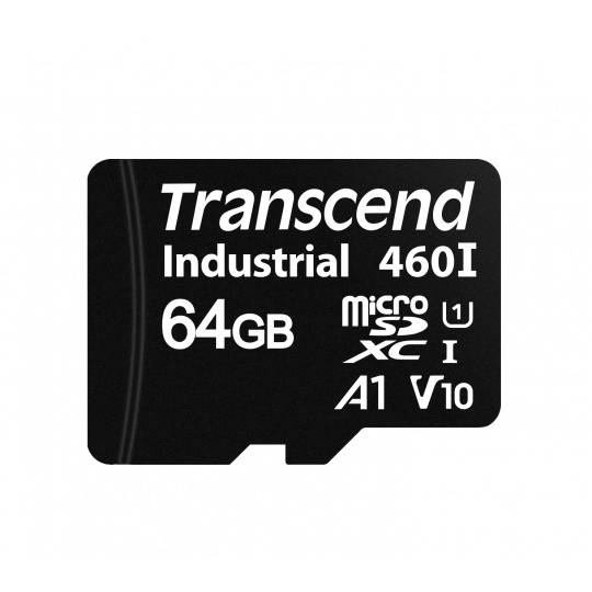 Transcend 64GB microSDXC460I UHS-I U1 V10 A1 3K P/E (3D TLC) průmyslová paměťová karta, 100MB/s R, 85MB/s W, černá