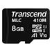 Transcend 8GB microSDHC410M UHS-I U1 (Class 10) A1 V10 MLC průmyslová paměťová karta (bez adaptéru), 100MB/s R, 22MB/s W