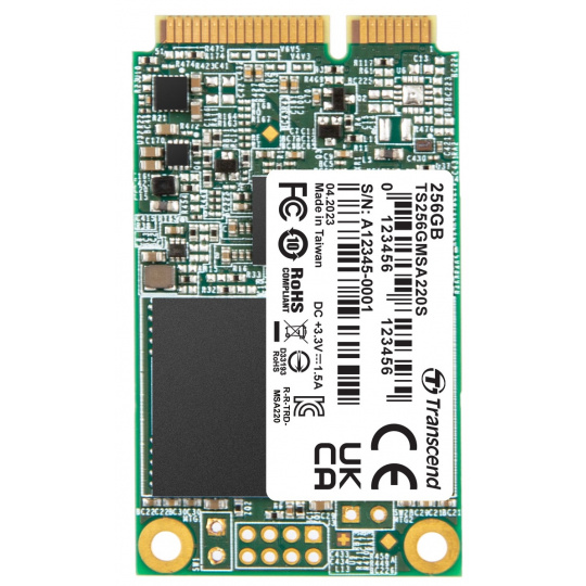 TRANSCEND MSA220S 256GB SSD disk mSATA, SATA III 6Gb/s (3D TLC), 560MB/s R, 500MB/s W