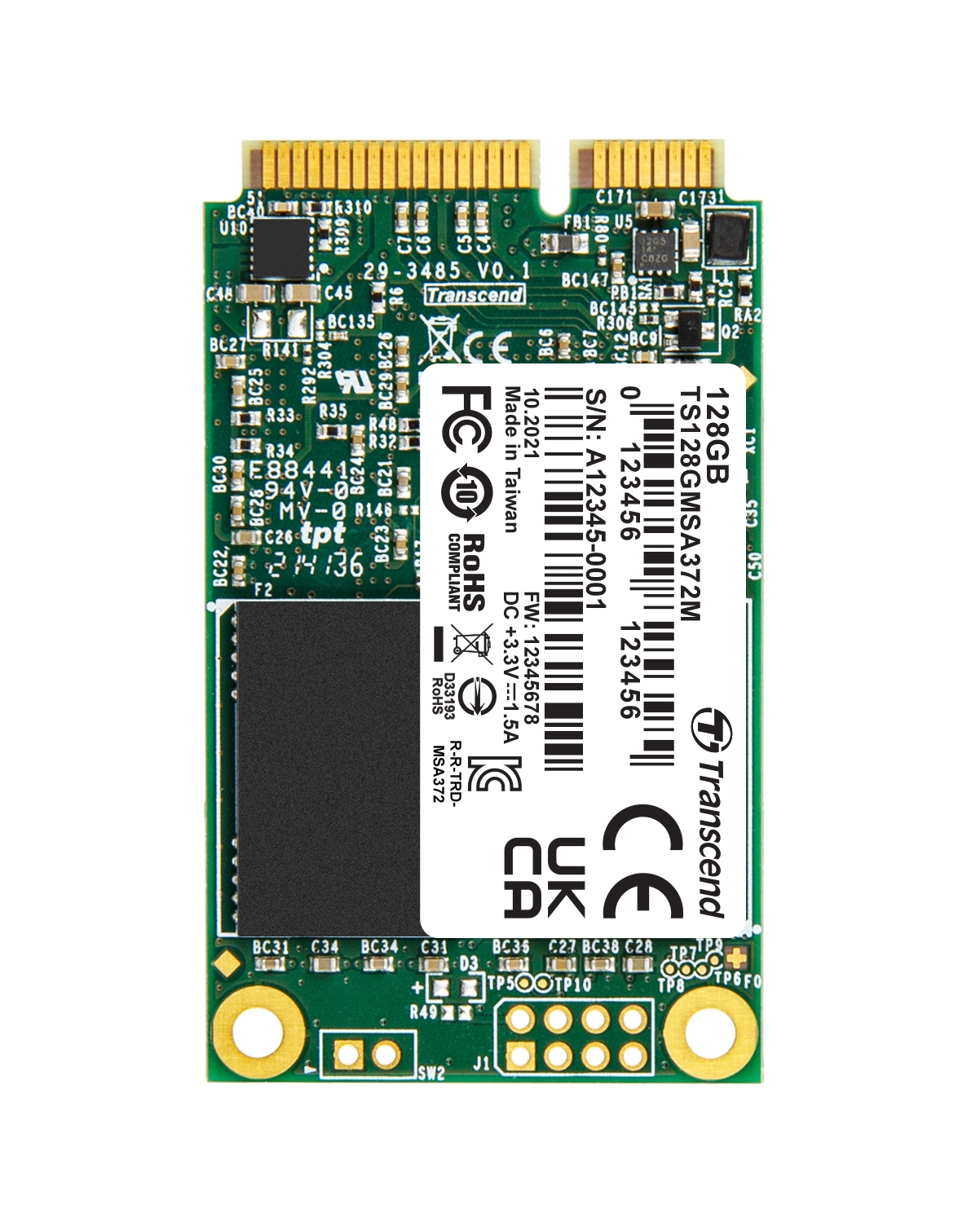 Supporting the Serial ATA interface and built around a powerful controller, Transcend's SATA III 6Gb/s MSA372M mSATA SSD delivers blazing-fast performance, and long-term reliability. The compact mSATA form factor is just one-eighth the size of a standard 2.5" SSD, making it perfect for use in space-constricted portable devices such as Ultrabooks, tablet PCs, and slim servers.