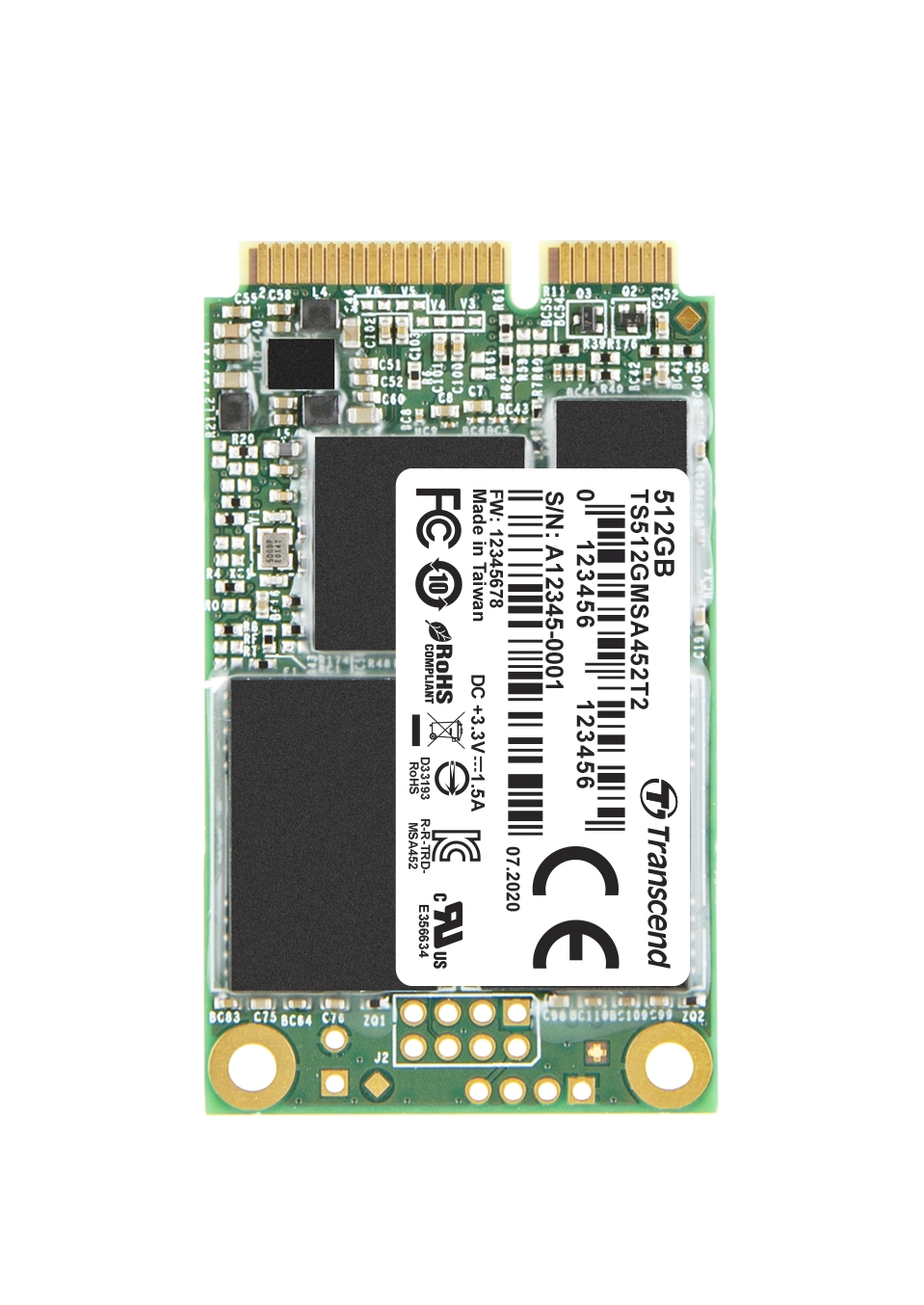 Featuring the Serial ATA interface and built around a powerful controller, Transcend's SATA III 6Gb/s MSA452T2 mSATA SSD delivers blazing-fast performance. The MSA452T2 features the latest 3D NAND technology for high storage efficiency, 30µ" PCB gold finger and Corner Bond technology for enhanced durability, built-in DRAM cache for fast access, an extended operating temperature range from -20°C to 75°C, and an endurance rating of 3K Program/Erase cycles for reliable operation. The compact mSATA form factor is just one-eighth the size of a standard 2.5" SSD, making it perfect for use in space-constricted portable devices such as Ultrabooks, tablet PCs, and slim servers.