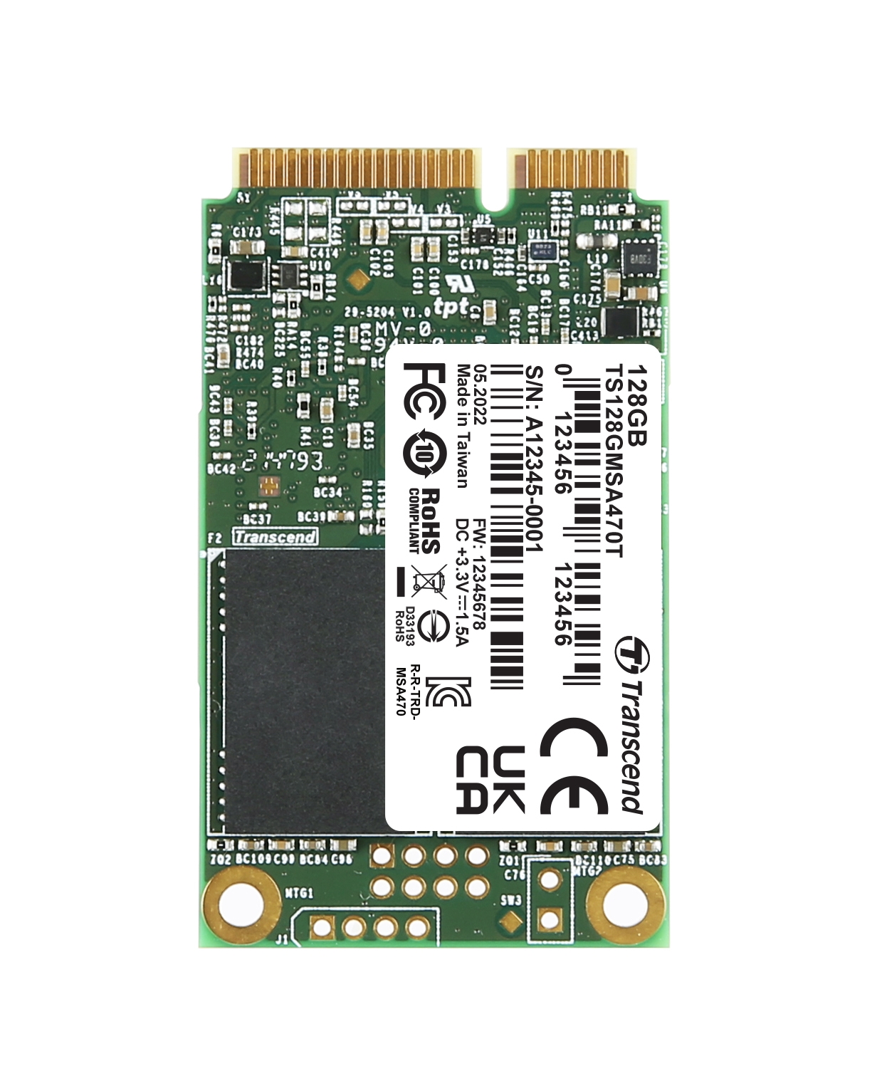 TRANSCEND MSA470T 128GB Industrial 3K P/E SSD disk mSATA, SATA III 6Gb/s (3D TLC), 560MB/s R, 520MB/s W