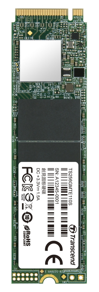 Transcend's PCIe SSD 110S follows NVMe 1.3 and utilizes the PCIe™ Gen3 x4 interface, meaning four lanes are used for transmitting and receiving data simultaneously, resulting in compelling performance of up to 1,800MB/s read and 1,500MB/s write.