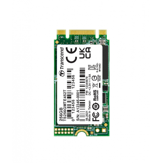 TRANSCEND MTE452T 256GB 3K P/E SSD disk M.2 2242, PCIe Gen3 x2 NVMe 1.3 (3D TLC), 1700MB/s R, 1250MB/s W