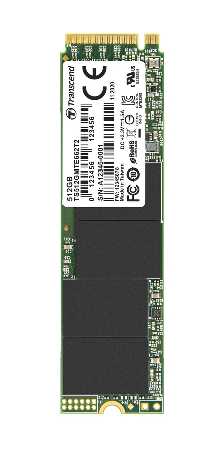 TRANSCEND MTE662T2 512GB 3K P/E SSD disk M.2 2280, PCIe Gen3 x4 NVMe 1.3 (3D TLC), 3500MB/s R, 2700MB/s W, tray balení