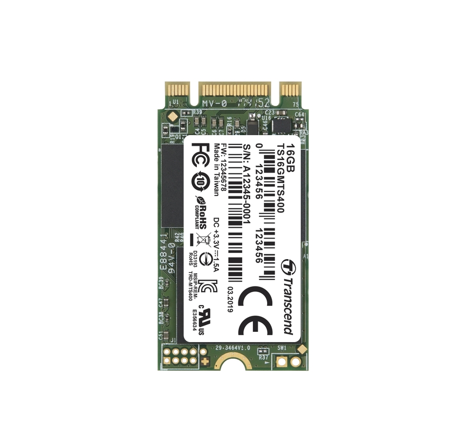 TRANSCEND MTS400 16GB SSD disk M.2 2242, SATA III 6Gb/s (MLC), 530MB/s R, 470MB/s W