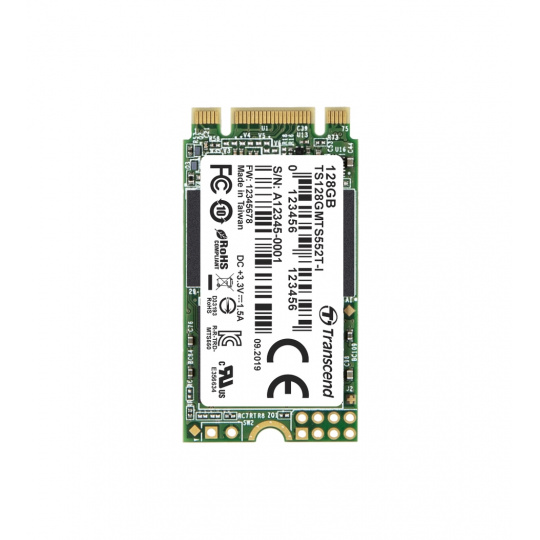 TRANSCEND MTS552T-I 128GB Industrial 3K P/E SSD disk M.2, 2242 SATA III 6Gb/s (3D TLC) B+M Key, 560MB/s R, 510MB/s W