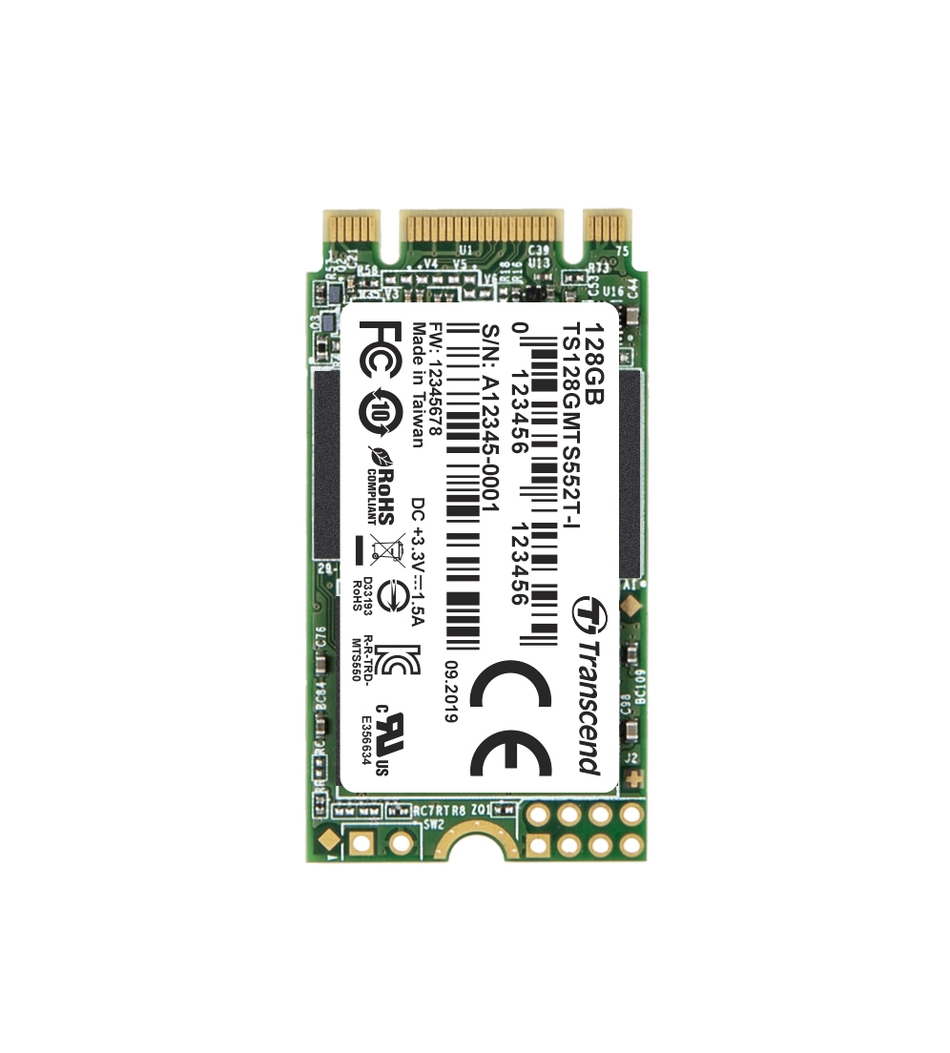 TRANSCEND MTS552T-I 128GB Industrial 3K P/E SSD disk M.2, 2242 SATA III 6Gb/s (3D TLC) B+M Key, 560MB/s R, 510MB/s W