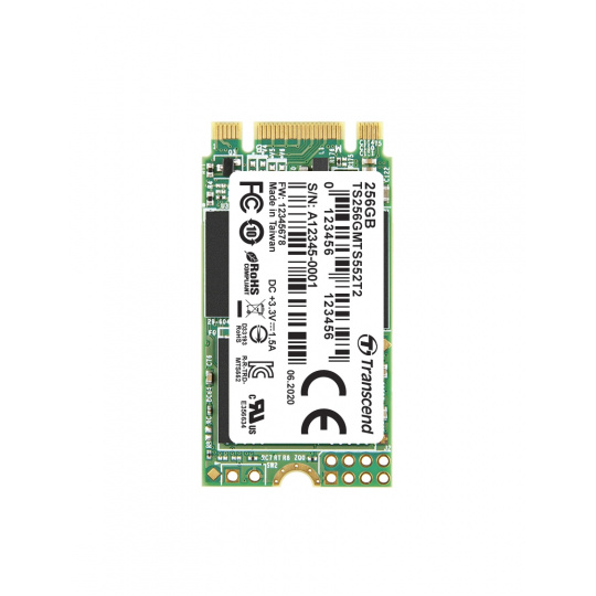 TRANSCEND MTS552T2 256GB Industrial 3K P/E SSD disk M.2, 2242 SATA III 6Gb/s (3D TLC), 560MB/s R, 410MB/s W