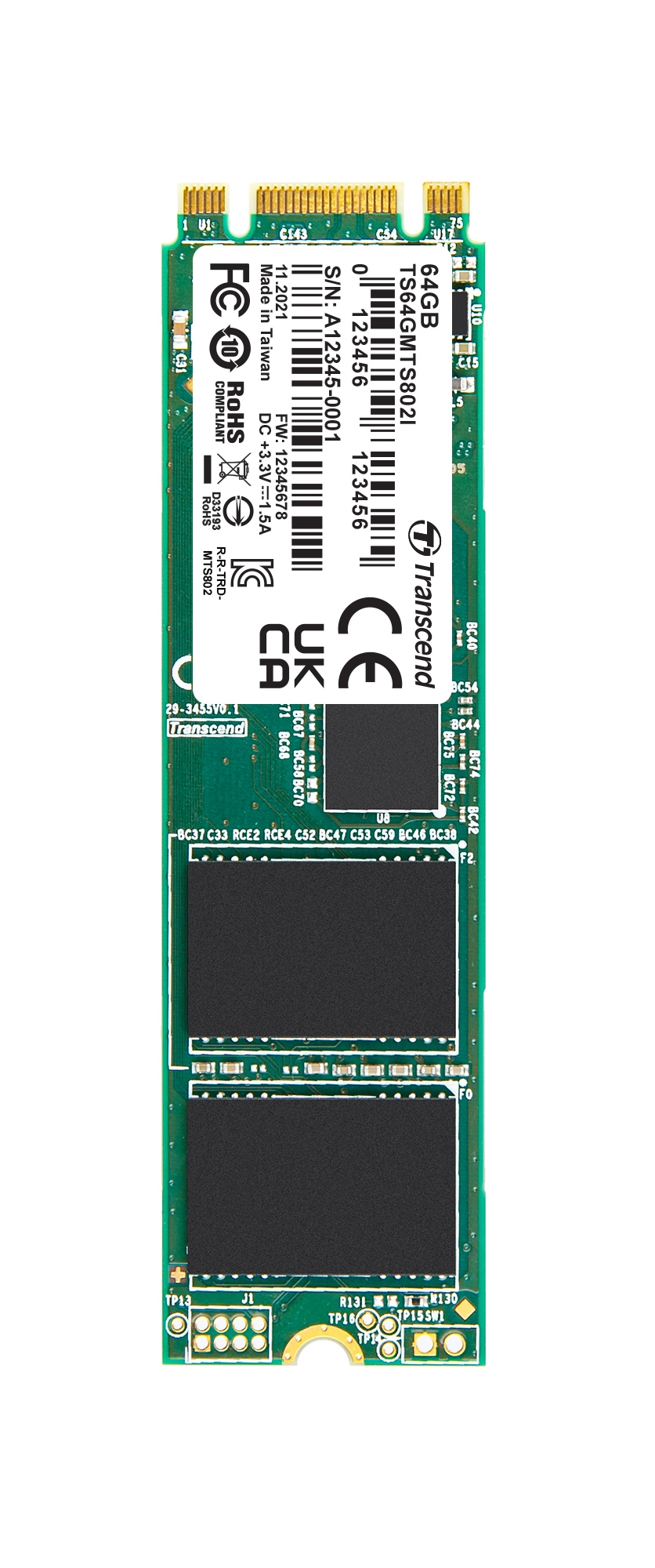 TRANSCEND MTS802I 64GB Industrial SSD disk M.2 2280 SATA III 6Gb/s B+M Key (MLC), 530MB/s R, 460MB/s W