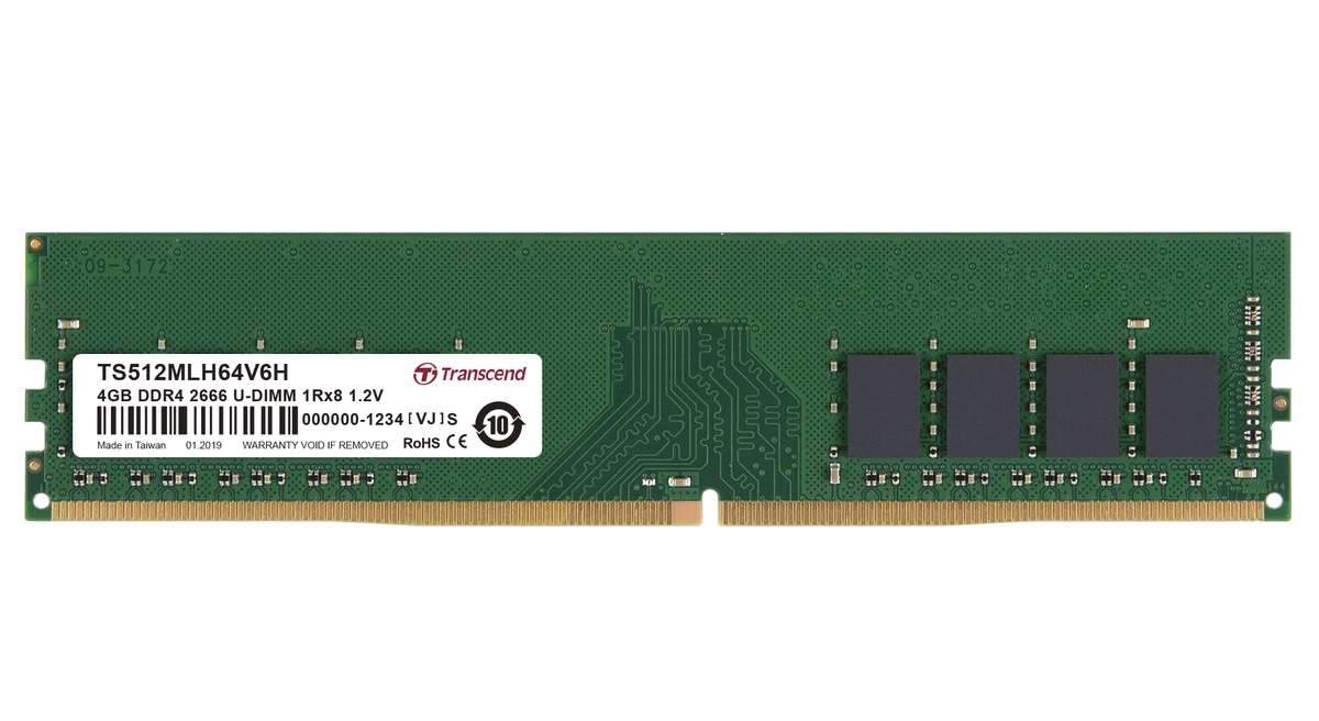 Built to exacting specifications with the finest chips and components available, Transcend DDR4-2666 U-DIMM memory modules undergo rigorous laboratory testing to be fully compatible with Intel® Coffee Lake and AMD Ryzen™ processors. Each memory module is rated at 2666MHz to greatly increase data transmission efficiency by higher bandwidth of up to 21GB/s. Operated at a nominal voltage of just 1.2V, Transcend's DDR4-2666 U-DIMM ensures that both operating temperature and electrical load on the memory controller can be reduced in order to save more energy.
