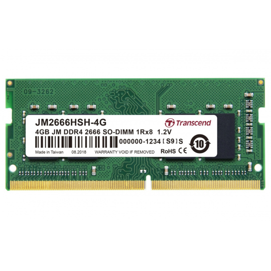 Transcend paměť 4GB SODIMM DDR4 2666 1Rx8 512Mx8 CL19 1.2V