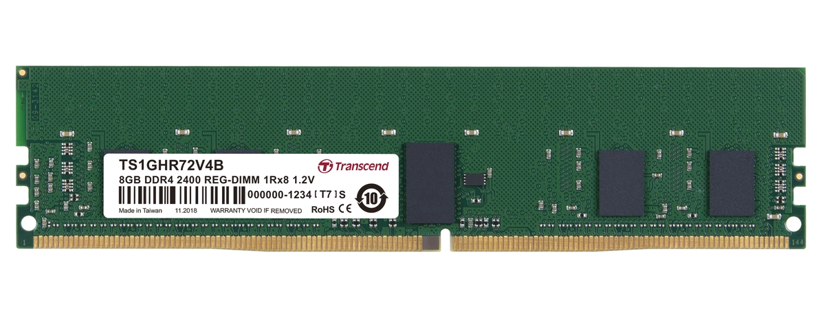 Built to exacting specifications with the finest chips and components available, Transcend's DDR4 R-DIMM memory modules undergo rigorous laboratory testing to be fully compatible with Intel® Broadwell-EP platforms. Each memory module is rated at 2400MHz, translating into data transmission rates of up to 19GB/s, and running at 1.2V to ensure that both operating temperature and electrical load on the memory controller are reduced in order to save more energy.