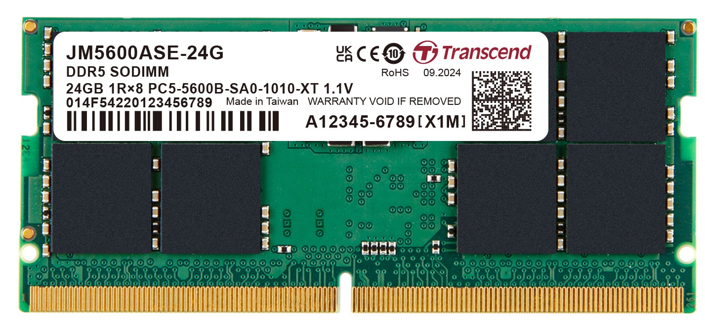 Transcend paměť 8GB DDR5 5600 SO-DIMM 1Rx16 1Gx16 CL46 1.1V