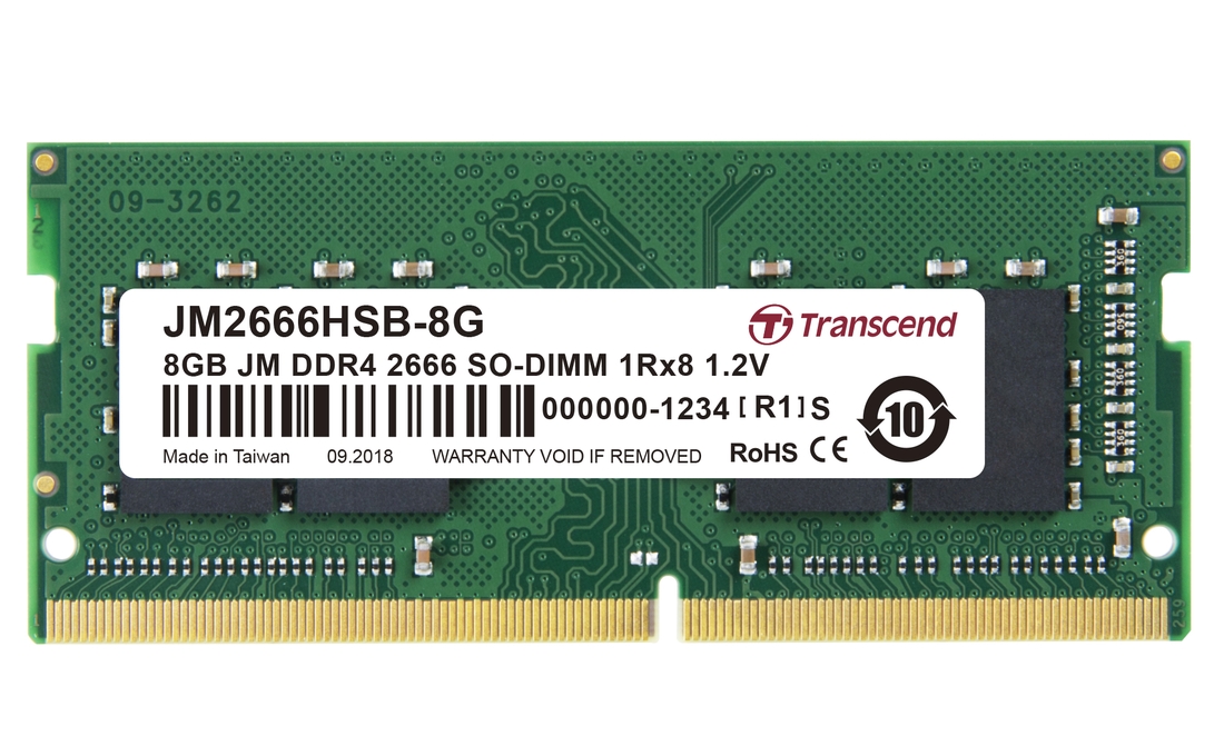 Transcend's JetRam memory modules are manufactured with true ETT grade, brand-name DRAM chips that have passed Transcend's strict screening process and rigorous environmental testing. The modules provide excellent compatibility and fully-tested reliability, which is ideal for PC upgrade at an attractive price. Each memory module is rated at 2666MHz to greatly increase data transmission efficiency by higher bandwidth of up to 21GB/s. Operated at a nominal voltage of just 1.2V, Transcend's DDR4 SO-DIMM JetRam memory ensures that both operating temperature and electrical load on the memory controller can be reduced in order to save up to 40% of energy compared to standard DDR3 modules offering 1.5V.